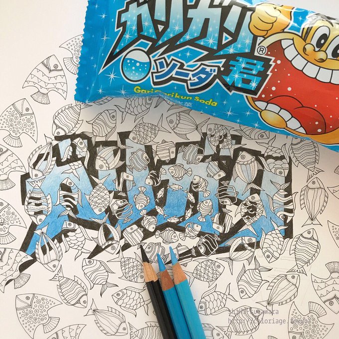 ガリガリ君とコラボ中😋💙 #大人の塗り絵 #海の楽園 #コロリアージュ #ガリガリ君 #ガリガリ君ソーダ #色鉛筆