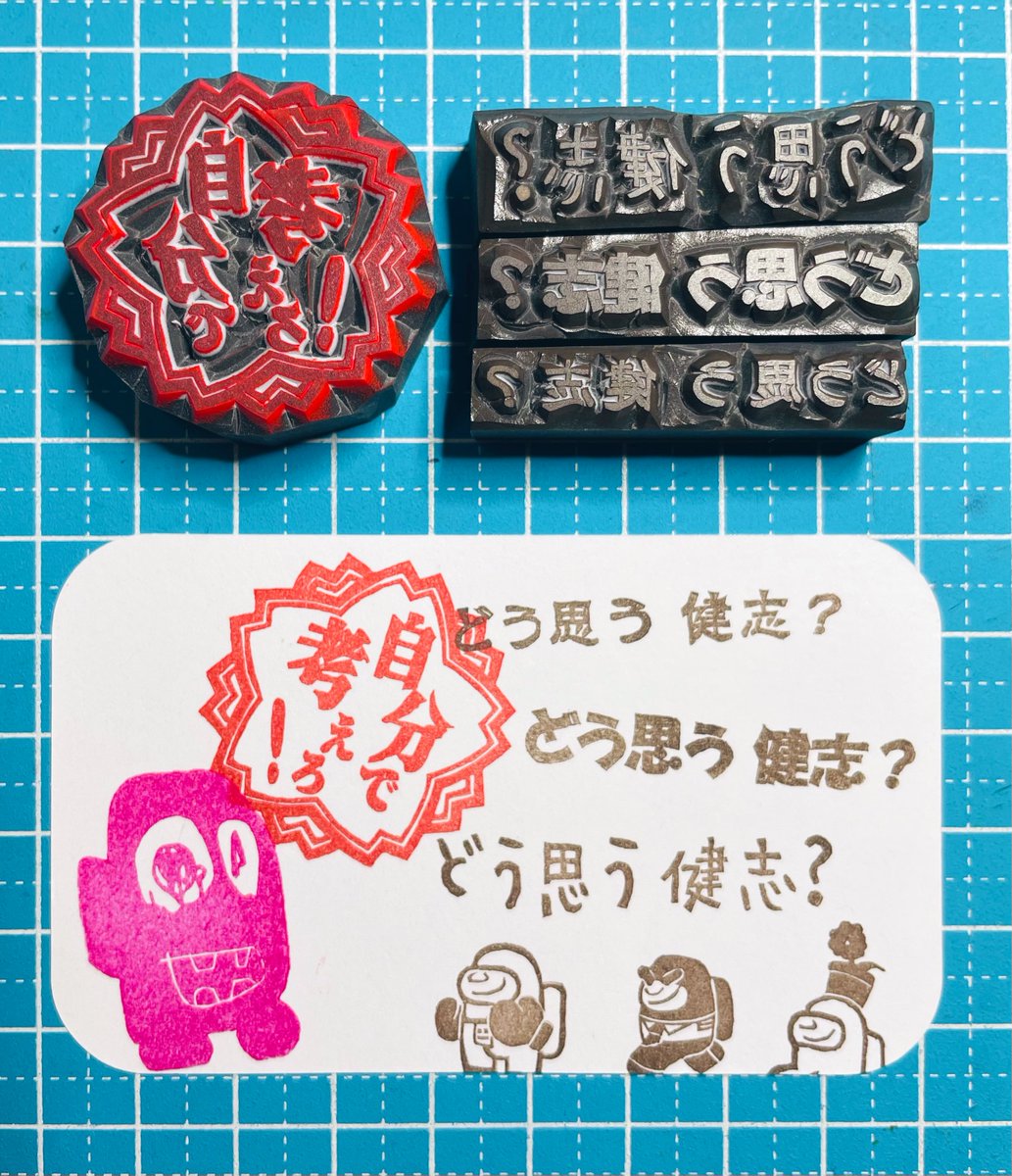 高田さん誕生日おめでとうございます🎉 最後の15人集まってのお祝い、1年やってきたからこそだなぁと高田村の繋がりにほっこりしました。特に思い入れのあるシーンをハンコにしたんだけど、どう思う、健志? 🌸「自分で考えろ!」 #高田大好きちゅちゅアート #消しゴムはんこ