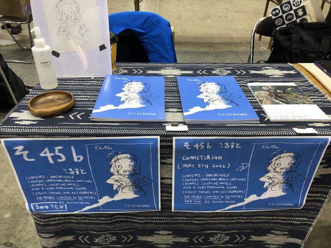 5/5(木)開催のコミティア140(初参加)にて新刊『だんぺん』を頒布します。未完漫画と、あとほとんどエッセイ文集です。私生活や音楽や旅の事など…。内容ご了承の上、お手にとって頂けたら幸いです。10部限定B5白黒20P。お品書きと漫画部分(それぞれ別作)の見本です。 #コミティア140 #COMITIA140
