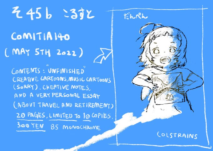 また、2022年5月5日に東京ビッグサイト東1・2・3ホールで開催予定のイベント「#COMITIA140」へサークル「こるすと」で申し込みました。音楽をテーマにした漫画にしようかなとは思ってますが、どうなるかわからずです。少しづつツイッタでもアップしたいです。