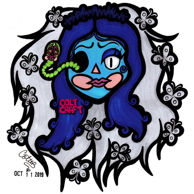 👻 #inktober 11: . “...𝘵𝘢𝘬𝘦𝘴 𝘮𝘺 𝘣𝘳𝘦𝘢𝘵𝘩 𝘢𝘸𝘢𝘺 — 𝙬𝙚𝙡𝙡, 𝙞𝙩 𝙬𝙤𝙪𝙡𝙙 𝙞𝙛 𝙄 𝙝𝙖𝙙 𝙖𝙣𝙮....” #corpsebride 🦋 . ( I ate green dyed popcorn the very first time watching this movie, you’re welcome for that fact. 🎃)