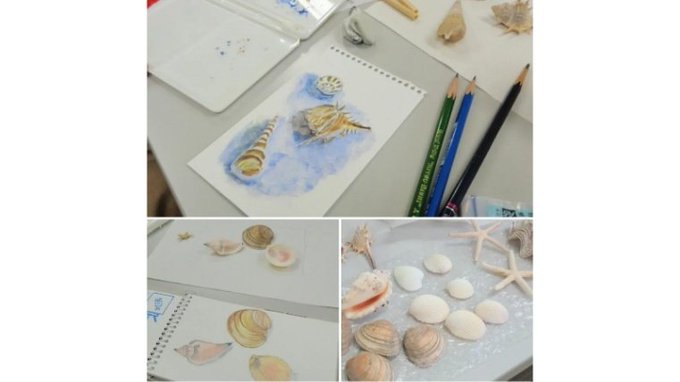 はがきサイズで楽しむ③を開催しました。 3回目のモチーフは貝殻でした!(^^)! #千葉県 #白井市 #千葉ニュータウン #自主事業 #市民限定 #はがきサイズ #楽しむ #水彩画 #透明水彩絵の具 #スケッチブック #趣味 #水彩画の基礎 #コミセン #白井コミュニティセンター