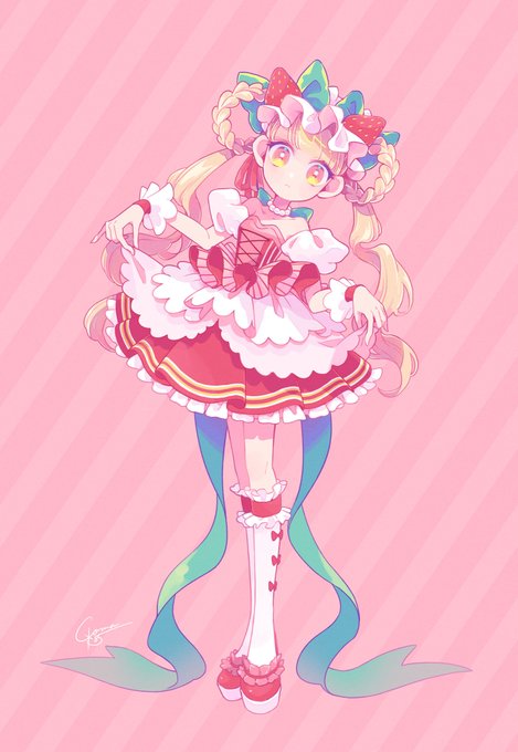 #一次創作絵師拡散フェス01 ポップでキュートな女の子を描きます。 リボンとフリルがすき!