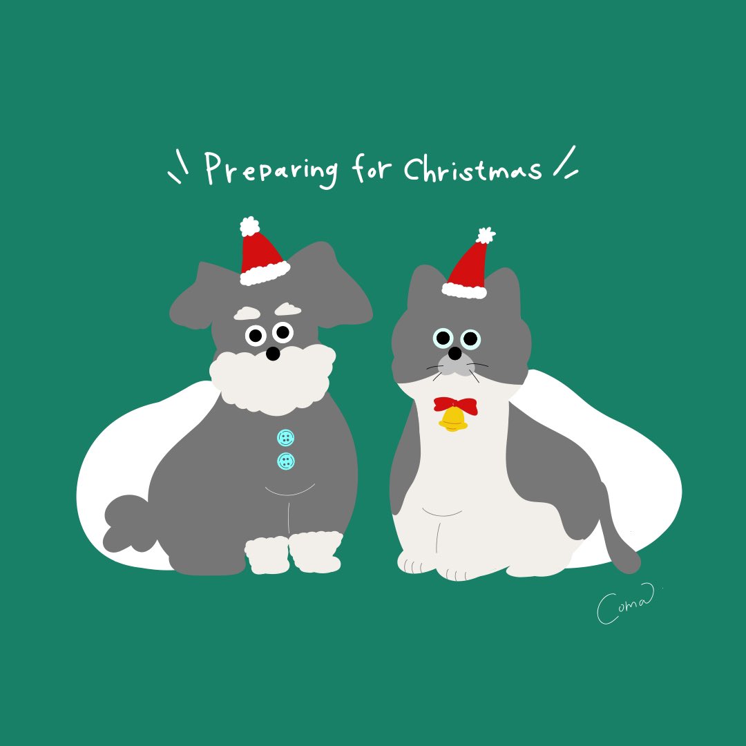 クリスマスの準備をしているシュナウザーとネコチャン🎄 本日もありがとうございました💘寝ます…😪 #100日チャレンジ #ゆるイラスト #イラスト #illustration #クリスマス #Christmas