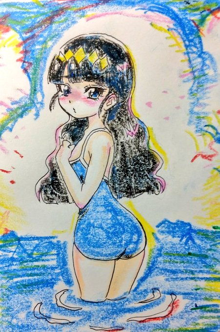 水着まなつ らくがきするつもりで 久しぶりにクリペで描いて ハードでしたわ(‘、の_ヽ)_