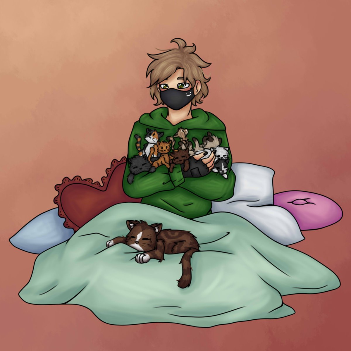 Dream and his smile-kittens, feat. Patches 🐱💚 (Rt's are very appreciated <3) #dreamfanart #PatchesFanArt @Dream__Fanart