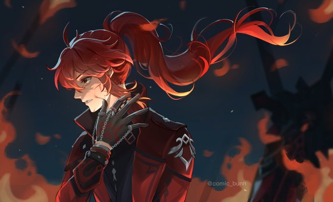 I saw a bunch of pics on Diluc's birthday of him holding the eagle, so I want to try it out, too. Have a nice weekend. ₍ᐢ •͈ ༝ •͈ ᐢ₎♡ 我也想试试涂下鹰鹰。#genshinimpactfanart #Diluc