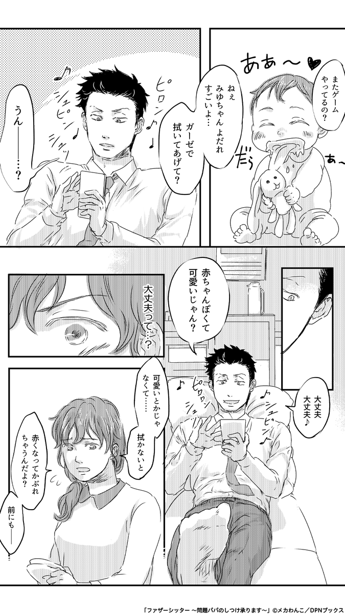 スマホゲーム三昧で何もしない夫。家事と育児で日々疲労困憊の春美は倒れてしまって… 毒舌ベビーシッターの一言が刺さる! (2/3) ↓続きをよむ↓ comic.jp/extra/oc_fater… #漫画が読めるハッシュタグ #コミック.jp