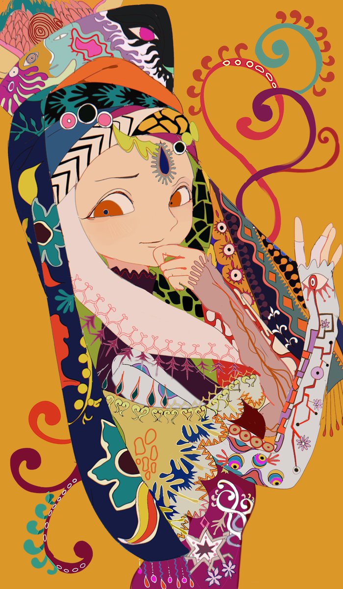 48 242 バティックのスカーフ少女 #創作 #イラスト 23/02/18 11:12