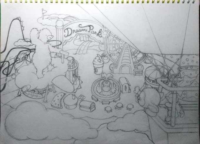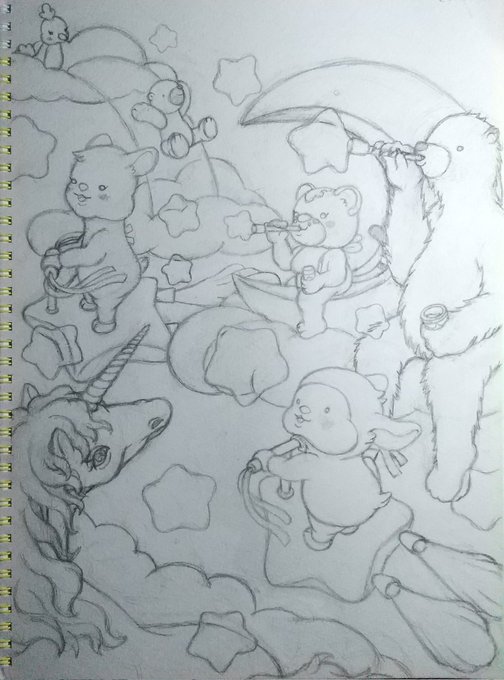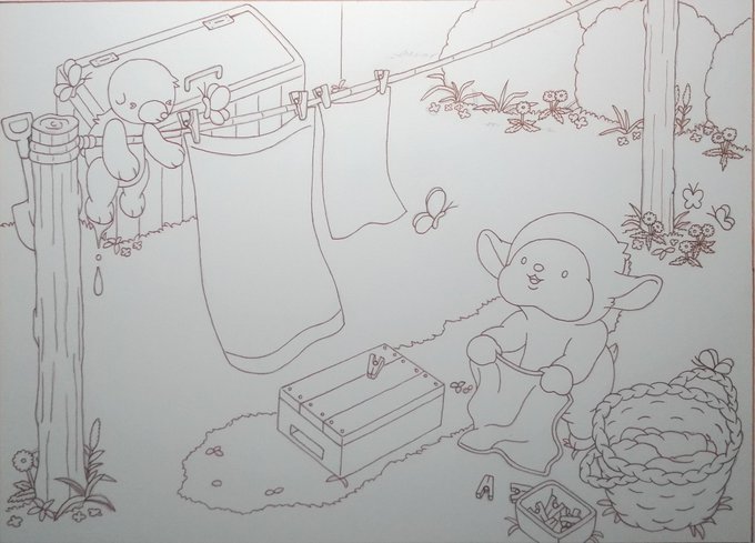 0 4 イラストの下描き、ひとまず完成しました✏️ #イラスト #アナログ絵 #制作過程 #オリジナルキャラクター #メルヘン #ひつじ #遊園地 23/02/18 22:12