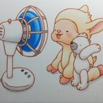 小さい絵、描きました☺️ 13. ワレワレハ ウチュウジンダ! #イラスト #オリジナルキャラクター #ポストカード #メルヘン #ひつじ #扇風機 #色鉛筆 #ユーモア