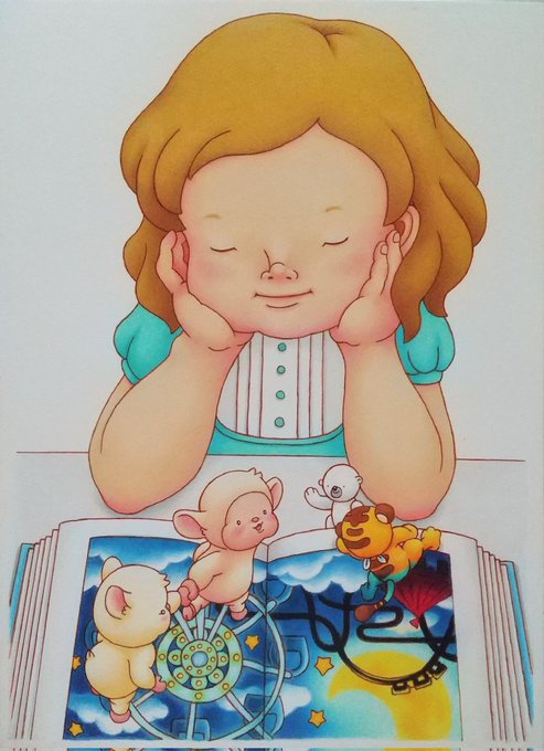 小さな絵を描きました✏️ 15. 読書?!の時間 #色鉛筆 #イラスト #オリジナルキャラクター #ひつじ #メルヘン #ポストカード