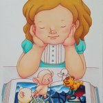 4 37 小さな絵を描きました✏️ 15. 読書?!の時間 #色鉛筆 #イラスト #オリジナルキャラクター #ひつじ #メルヘン #ポストカード 22/12/08 21:05