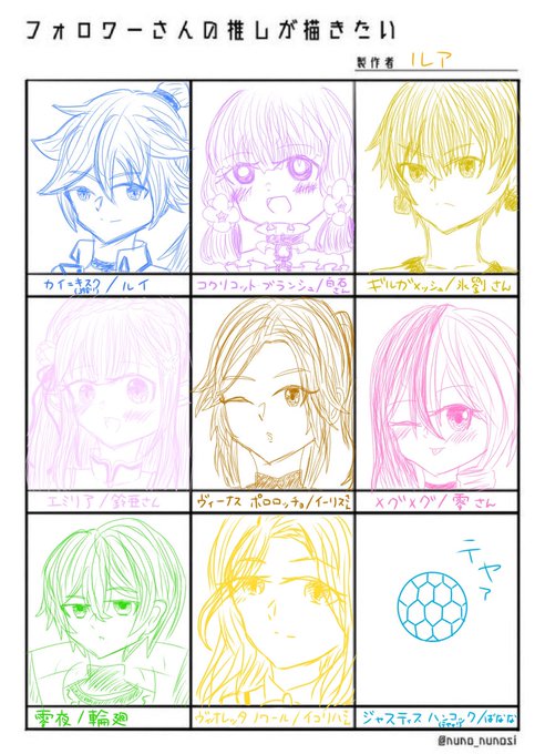 コンテンツ関係なくあれこれ好きを詰め込んだ最推しと最推しじゃないのいるし初描きもいるし全員女の子かと思いきや男2人いる