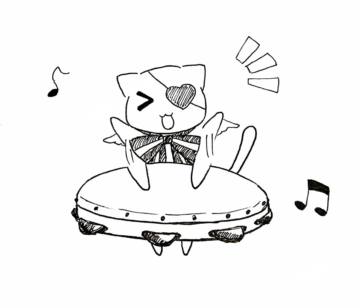 【#オモチアート】タンバリンを叩くオモチちゃん(今日の配信で出た話題から)