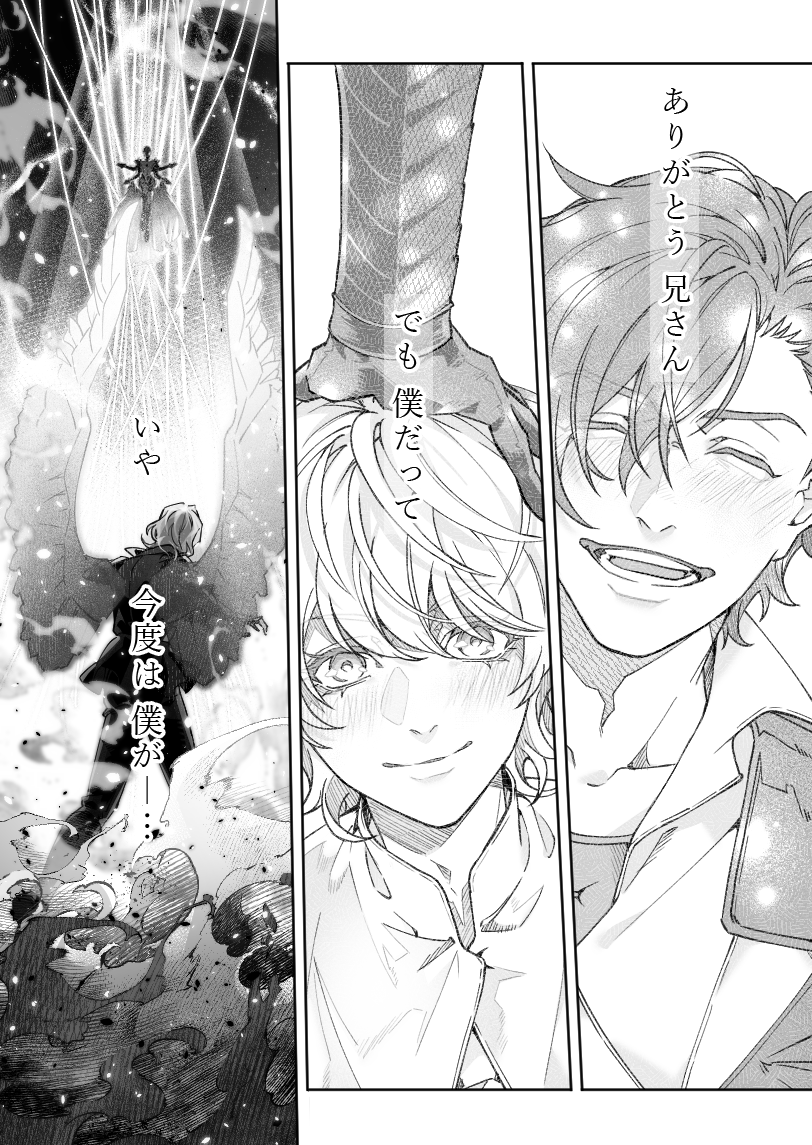 208 1152 『熱を 持つ』(1/3) ※注意※ネタバレしかない ※16くんの火兄弟の話 言い回しは代えてますが最後のジョの台詞がめちゃくちゃに刺さって大好きだったので…描きました…最高です… 23/07/10 19:31