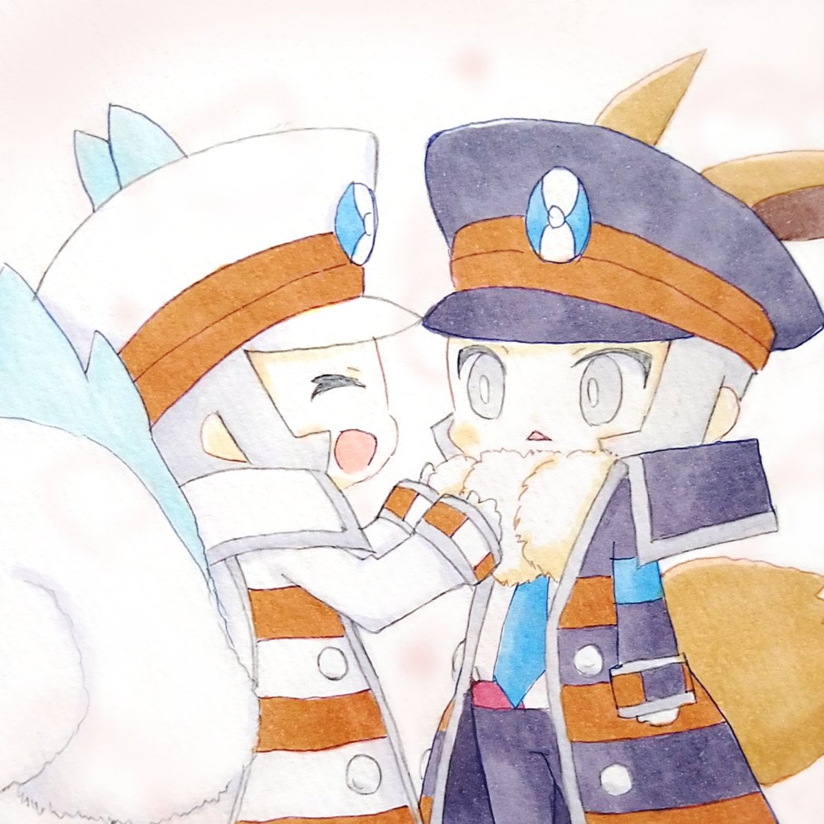 描き納め 冬毛でもふもふのぶい▲さんに触りまくるぱち▽さん