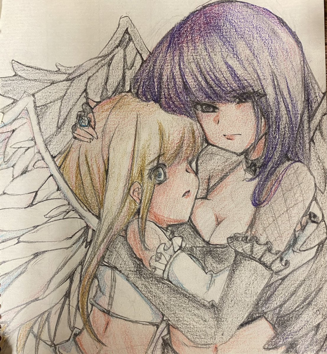 #マジカルドロップ #ワールド #イラスト オリキャラ……そうだ天使描きたいな?と思って描いてたのだけど 気がついたら描いてました ( ˙꒳˙ ) ラフ画ですがわかる人はわかる (タグでばれてるよー('ω'))