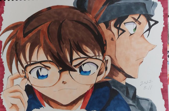 4 54 緋色の弾丸 こっちの方が綺麗に取れたので再掲!!!(日付け間違えてます) #名探偵コナン #Conan #赤井秀一 #江戸川コナン #コピック #模写イラスト 22/08/22 08:53