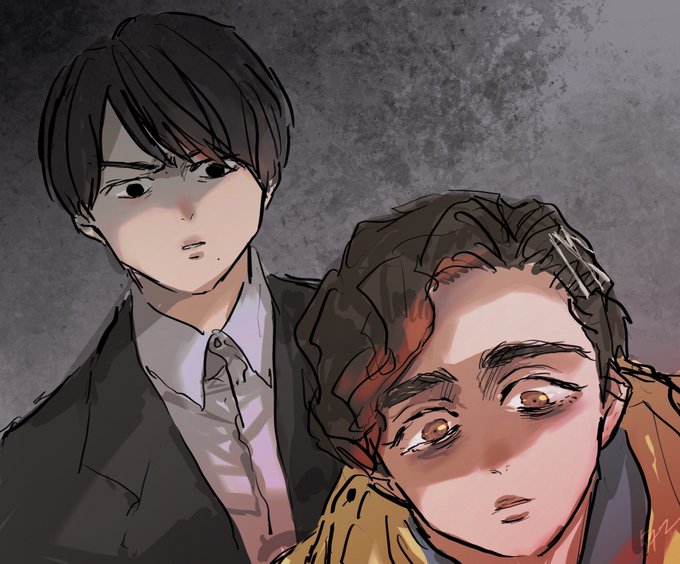 14 69 ラフ交換こした絵です! おうせさん(@a59aca)に戴いたラフを描かせていただきました!! 自分の絵柄だけどおうせさんぽい構図だな…!とひしひしと感じて、構図にまで絵柄があって凄いなと改めて思いました…! 戴いたラフと大分印象変わってるからそっちも見て欲しい気持ち。 22/07/12 21:09