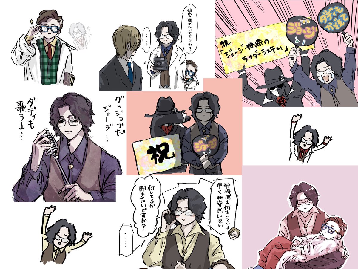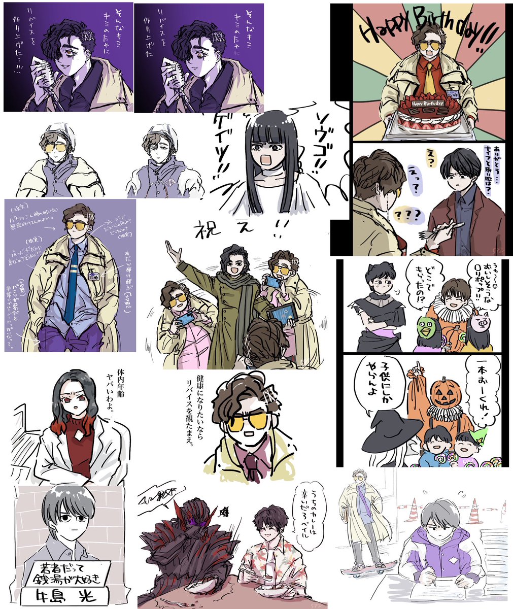 21 140 #今月描いた絵を晒そう ①狩崎ヒロミと集合絵 ②ジュウガ関連 ③今月のダディ ④コマ絵 の一部抜粋!! 今月もいっぱい描いた!楽しかった!! 22/08/31 21:06