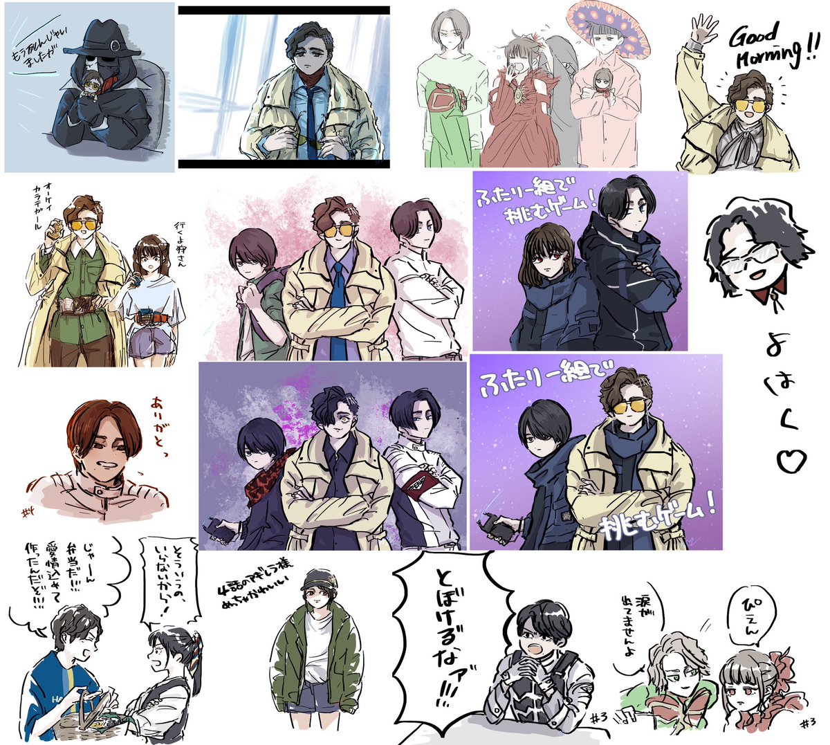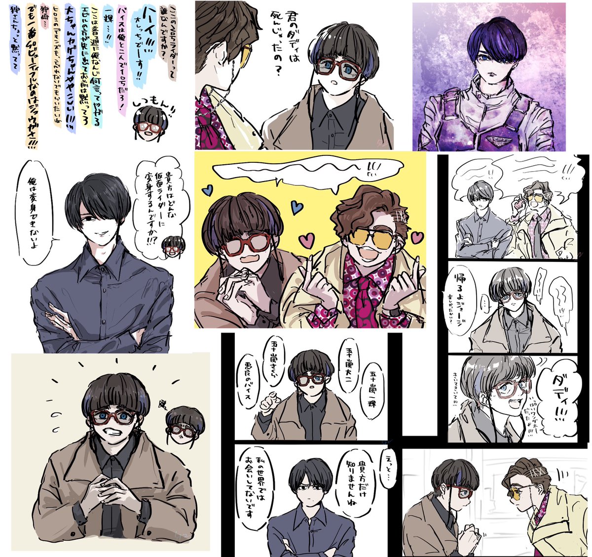#今月描いた絵を晒そう ①狩崎ヒロミと集合絵 ②ジュウガ関連 ③今月のダディ ④コマ絵 の一部抜粋!! 今月もいっぱい描いた!楽しかった!!