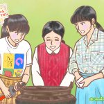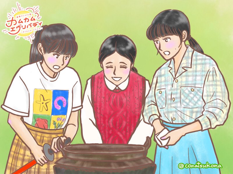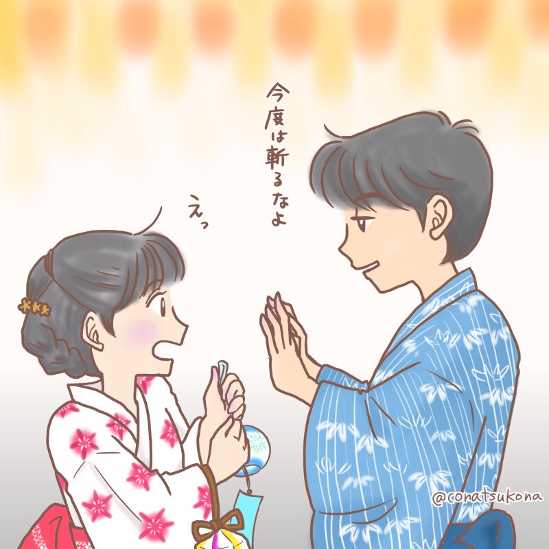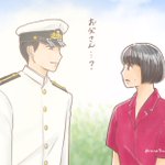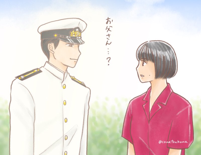 終戦記念日のサイレンが鳴ってるわずかな間に見た真夏の白昼夢。るいの背中越しに見えた真っ白な軍服に身を包んだ稔さんはまさに夢のような美しさだったよ。このツーショットを泣きながら描くことになるなんて思いもしなかったなぁ。゚(゚´ω`゚)゚。 #カムカム #カムカムエヴリバディ #カムカム絵