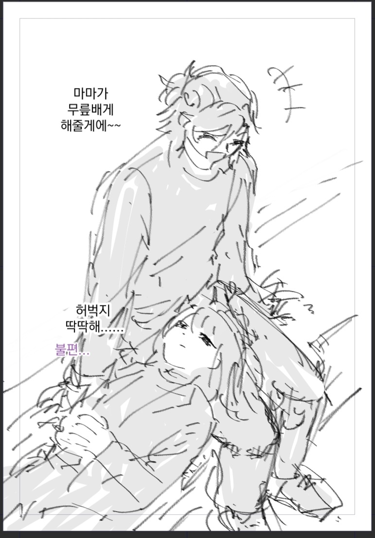 마다안즈 무릎베개 링크엔 반대포지션...별거읎는데 친구가 보고 저속하다길래(;) 포이피쿠로. poipiku.com/1346044/801539…