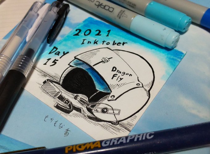 頑張って今日のレポート終らせて急いで描いたのに結局こんな夜中になったし日本時間間に合わなかった! なんの捻りもないけど、ただただヘルメットを描きたかった🪖 去年と若干被るけど。 #inktober2021day15 #inktober2021 twitter.com/conconmonaka…