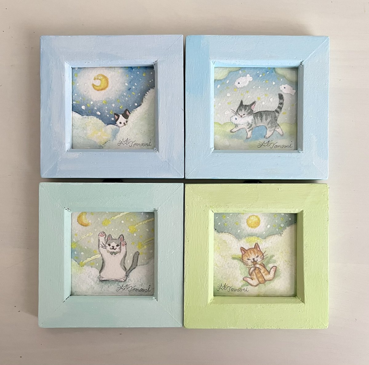 【お知らせ】 いよいよ明日から『ミニ原画通販展2022.01』が開催されます🌟 展示会のテーマは『夜』です🌓🐱☁️ ●2022/01/02(日)22時~10(月)24時 ●主催者様のBOOTHにて展示販売 ▼まつおかともみのページは以下から booth.pm/ja/items/35443… よろしくお願いします🐾 #pico展 #illustration #猫