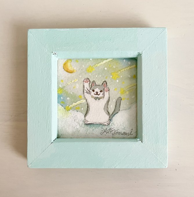 #pico展 『ミニ原画通販展2022.01』開催中です🌟 展示会のテーマは『夜』です🌓🐱☁️ 既に1点お迎え頂いているようで本当にありがとうございます❣️😊 1/10(月)24時までよろしくお願いします🐾 ▼まつおかともみのページは以下から booth.pm/ja/items/35443… #pico展 #illustration #猫 #イラスト #cat