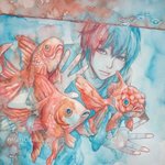 30 222 『金魚』 ジーッと見てしまう #一次創作 #創作男子 #透明水彩 23/07/16 22:46