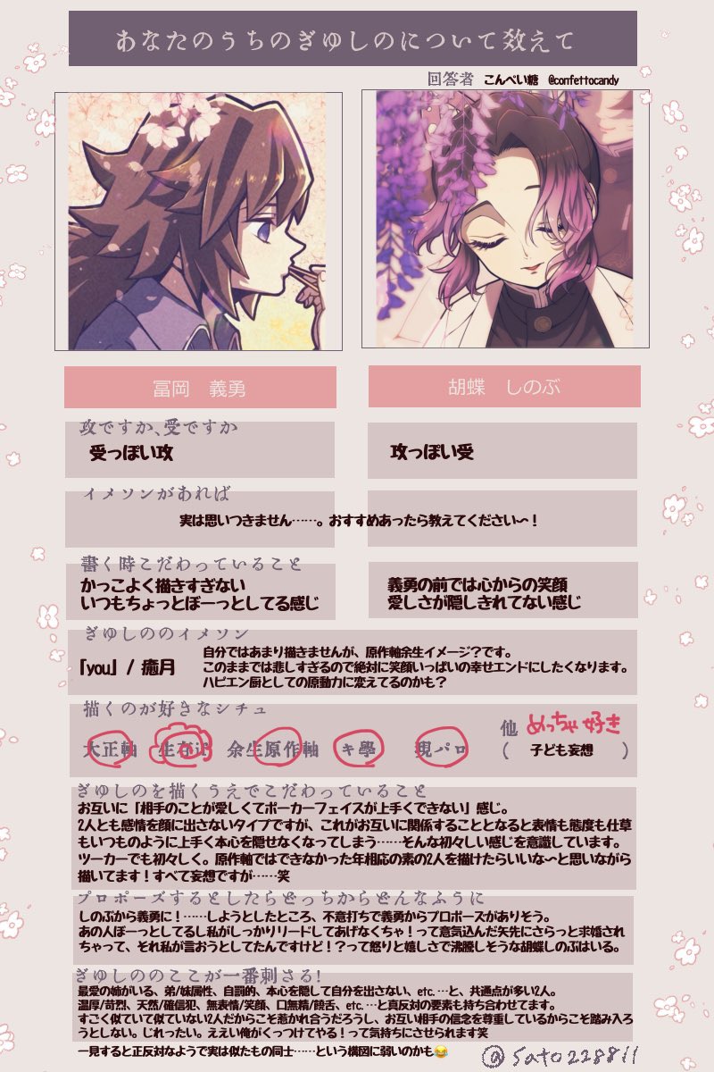 さとう様のぎゆしのテンプレお借りしまして便乗でやってみました〜! シリアスなのもバチバチなのも割となんでも好きで摂取しますが、自分で描くとなると傾向が偏ってるなと改めて思いました😂9割9分9厘 生存if…… twitter.com/sato228811/sta…