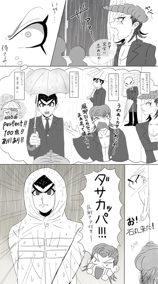 ☔️石丸くん雨の日傘似合うなあと思いつつ、 カッパ派もアリだなと思った落書き漫画