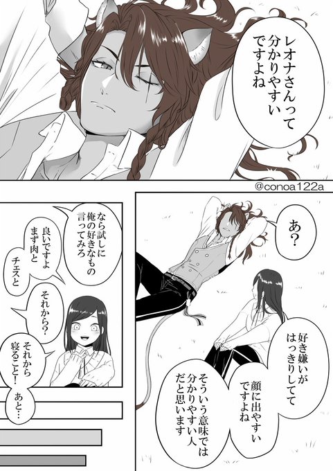 193 3483 本心を隠すとき口数が増える(と良い)レオナさん 【レオ(→)(←)監♀】 ※監♀顔アリ。喋ります。 ※ガラレオナのパソスト内のセリフ一部使ってます。 #twstプラス 付けるタグ間違えてました…!!!! 22/05/04 00:19