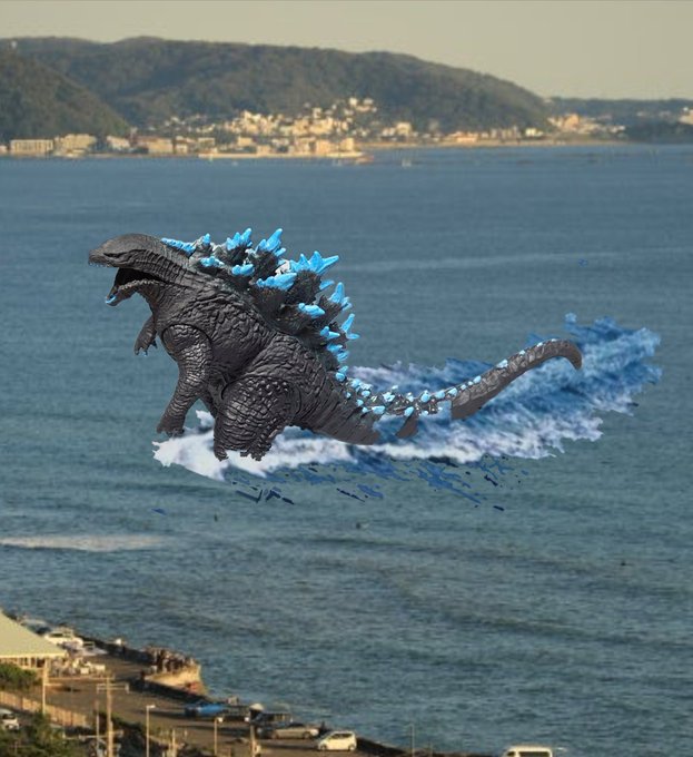 #おもちゃ撮影会 6/30お題「ハイアングル3」 大変です!埼玉湾に巨大不明生物が出現しました⁉️
