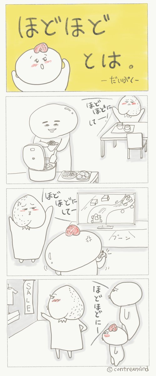🍓#ほどほど 「ほどほどにしてーー❗️」 ほどほどってどれくらいかな、、うぅ。。これくらい? #ほどほど経験募集中 🍓 #イラスト #4コマ漫画 #漫画が読めるハッシュタグ #illustration #comics #コミックエッセイ #だいぷくちゃん #animation #あるある
