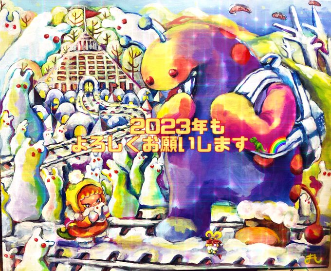 皆さま、あけましておめでとうございます🎍🌅🐇🌈✨ 完全出遅れてしまった(笑 現在個展に向け最後の悪あがきかましまくってますので、2023年展示に笑顔で皆さまに会えるのを楽しみにしております🦖✨ そんで2022年私。よく頑張った!! #あけましておめでとうございます #絵描きさんとつながりたい