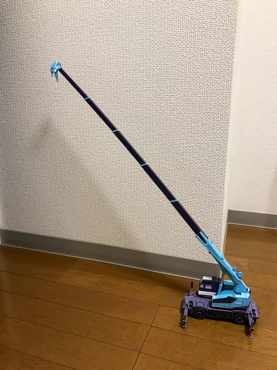クレーン車作ってってリクエストされたので作ったら、すげーかっちょいいのができた✌️✨ #まだ作ってた #ペーパークラフト #おうち時間 #明日からやっと仕事が始まる