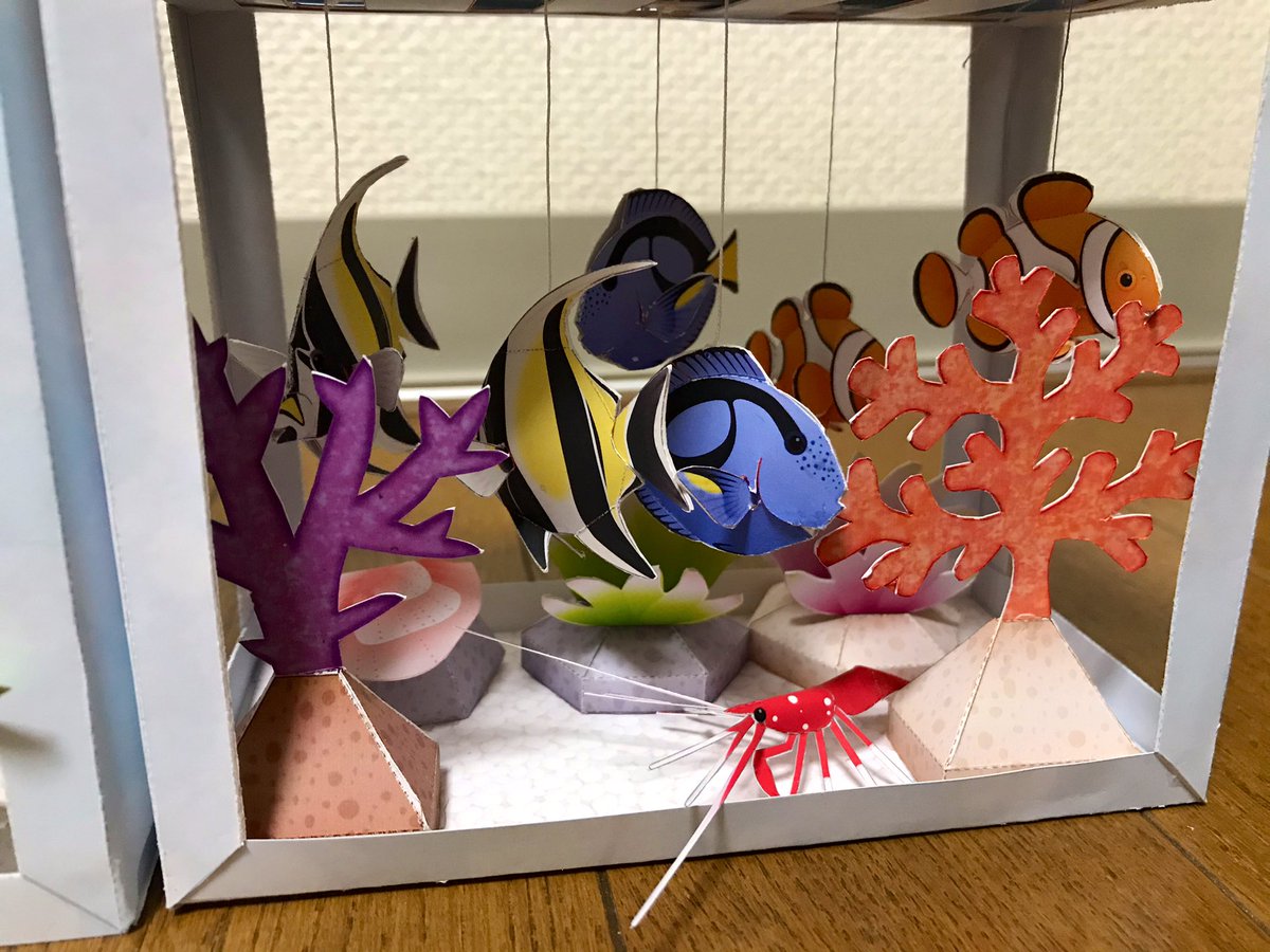 0 1 犬の合間に作ってた魚たち。密になりすぎできたのでこのへんで完成ってことで。 #ペーパークラフト #アクアリウム 21/02/09 18:19