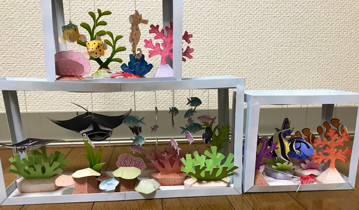 犬の合間に作ってた魚たち。密になりすぎできたのでこのへんで完成ってことで。 #ペーパークラフト #アクアリウム