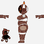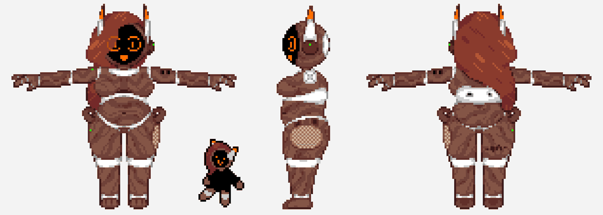 I changed my main robot design to somewhat resemble vintage radios and tvs and stuff cause theyre cool as heck, and made a reference sheet thing cause i felt like it :] #pixelart #pixelartist