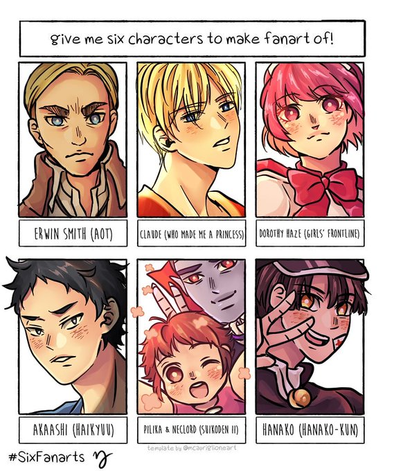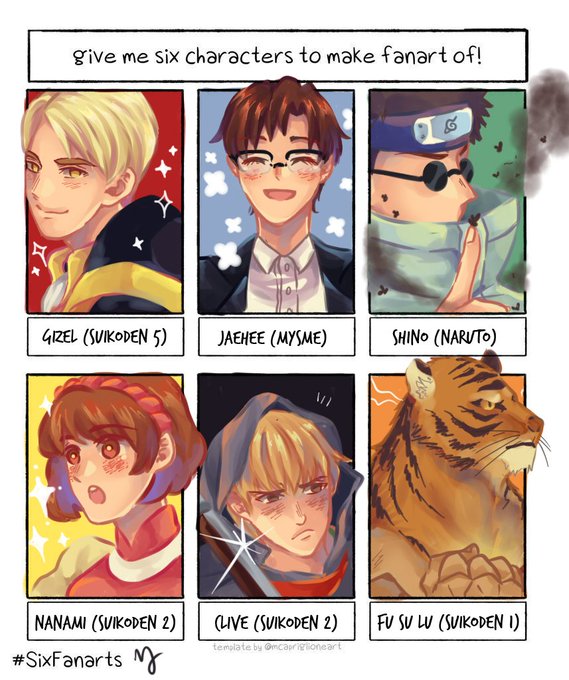 Soooo I did #SixFanarts challenge on instagram and here's the result! ✨ It's time I do this on twitter, too! So hey drop some characters here and I'll choose six of them to be drawn ^^
