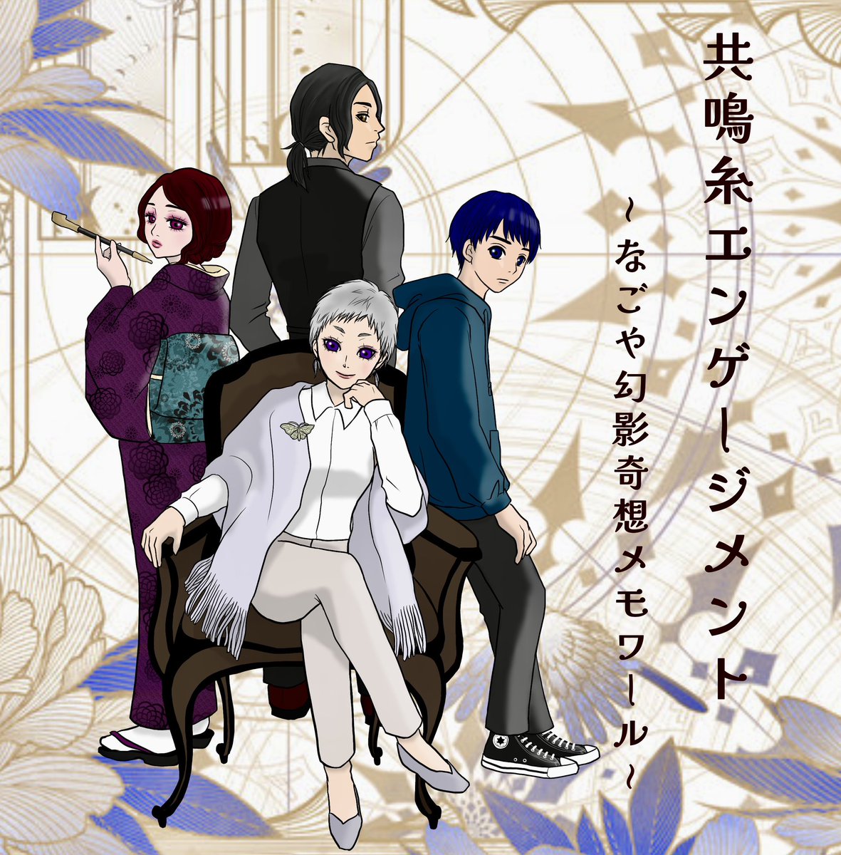 #今月描いた絵を晒そう 新作(というか続編的な何か)メインキャラ4名描きました。 髪型とか手とか服とか頑張った。つもり。 というわけで、新作『共鳴糸エンゲージメント〜なごや幻影奇想メモワール〜』は来月半ばごろから連載予定です。 略称は #共エン で。