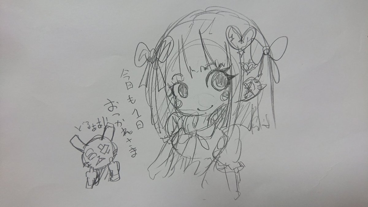 #このタグを見た人はラフ画とその完成絵を見せる コピー用紙が破れかけるくらい描いてる