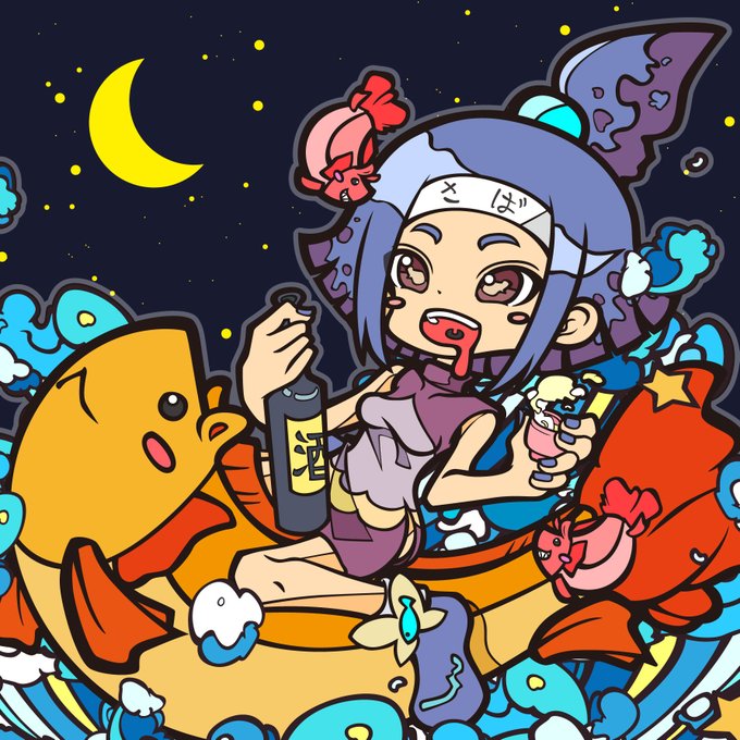 3 15 ちなあなごさんのところの 鯖子を描きました!! 酔っぱらって夢でも見たのか、現実か 魚に乗って、月を肴に楽しく飲んでいます。 #鯖子は遊泳中 22/11/26 21:45