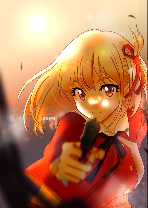 🔰無名絵師!楽しい絵目指します!見て下さる方フォローお願いします! #いいねかRTでフォローする 全反応巡回します #絵師さんフォロバ100 🔴今日は #リコリス・リコイル #錦木千束 ちゃん 夕陽逆光の練習…加減難しい&新しい効果お勉強楽しい🌸そして🧡&♻️感謝ですっっ!✨#lycoris_recoil