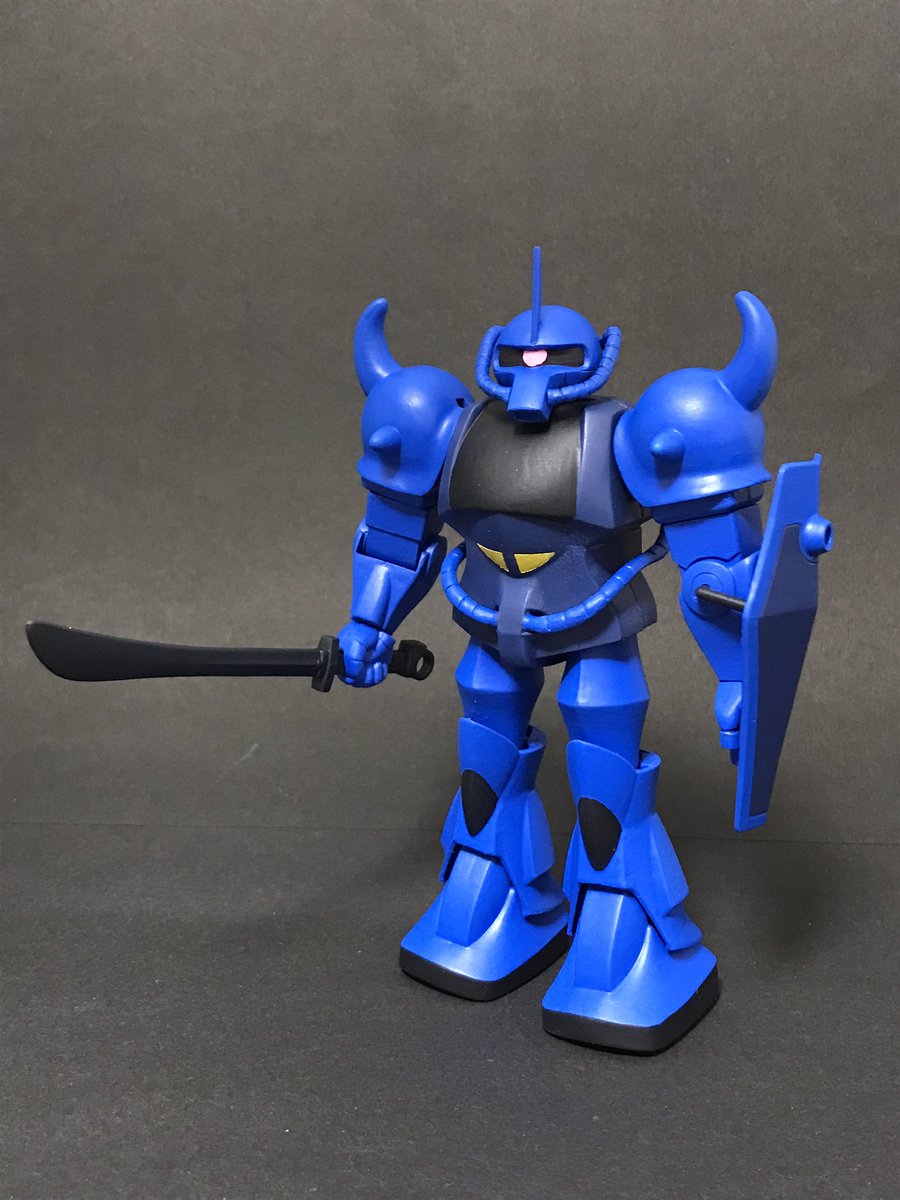 旧キットグフ、完成しました! 若干艶消し被ったけど見なかったことにする! 武器セットからヒートソードを装備で作成。 サクサク作れて3日ほどで完成しました。 #ガンプラ