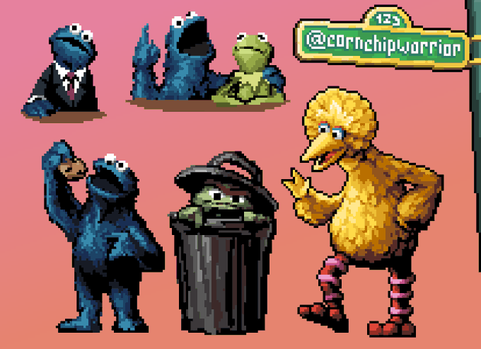 Some sesame street doodles. I love cookie monster. #pixelart