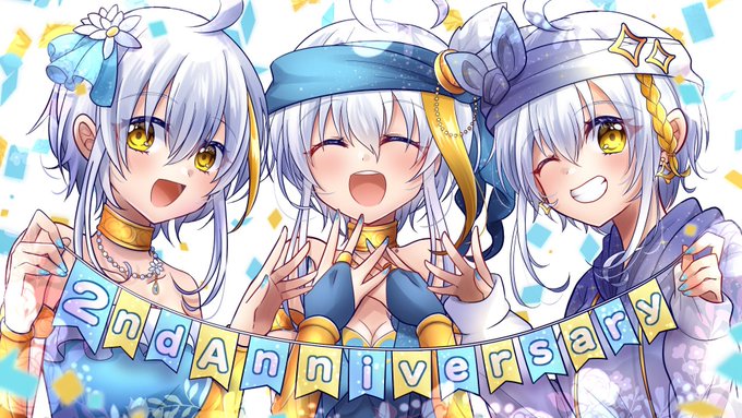 ミリル・シャムシルルちゃんの2周年イラストを描かせて頂きました!🎉 歴代衣装勢揃いです! 2周年おめでとう!頑張っててえらい!これからも自分が1番楽しいと思えることに全力で活動頑張ってください!! twitter.com/miriru_sham/st…